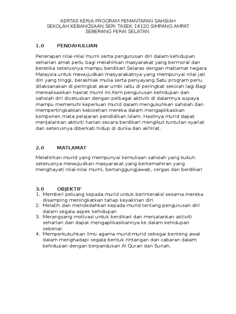 Kertas Kerja Program Pemantapan Sahsiah Pdf